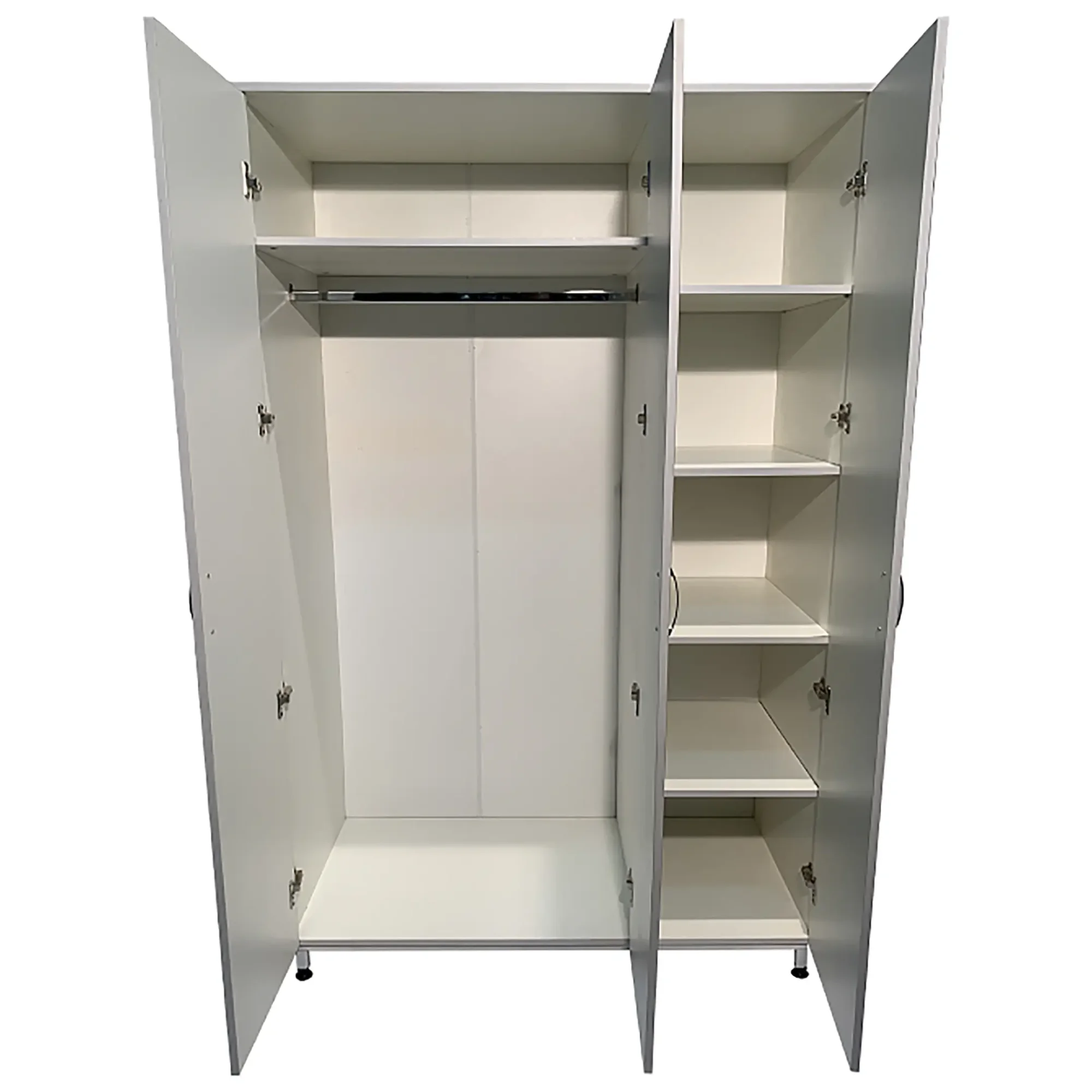• Оснащен штангой, полкой для обуви, полкой для головных уборов, дверцами и регулируемыми по высоте ножками.