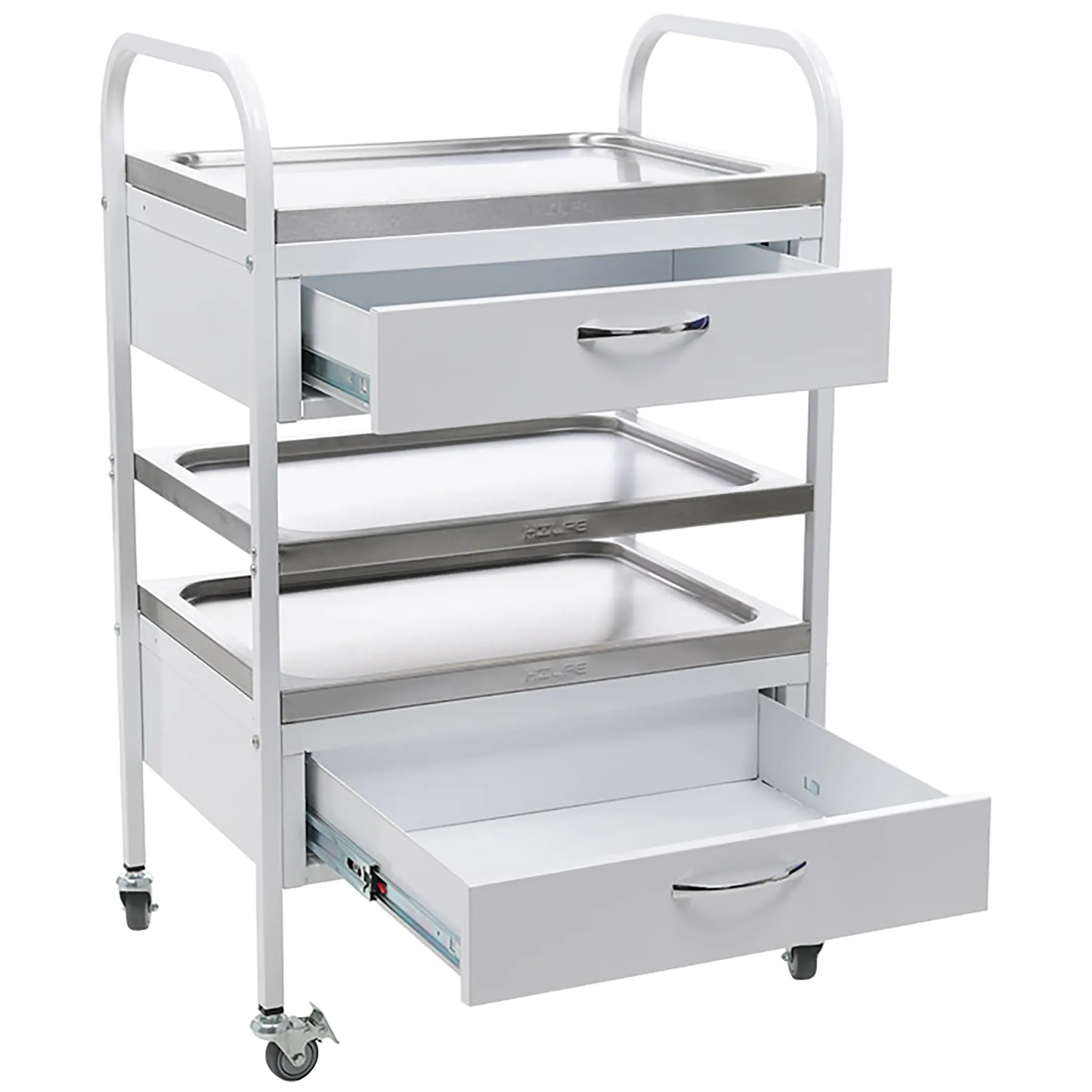 • имеет 4 колеса из не маркой серой резины D= 50 мм, два из которых снабжены тормозом;