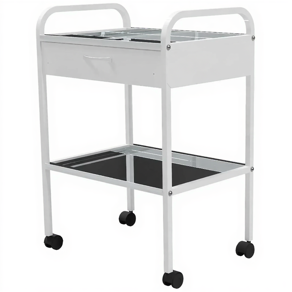 Столик медицинский инструментальный СМИ-02-01 (полки нерж. сталь, колёса серая резина) — это компактный мобильный столик, предназначенный для размещения инструмента, лекарственных препаратов и приборов в медицинских учреждениях и лабораториях. Модель имеет каркас из профильной стальной трубы, один выдвижной ящик и верхнюю полку из нержавеющей стали.
