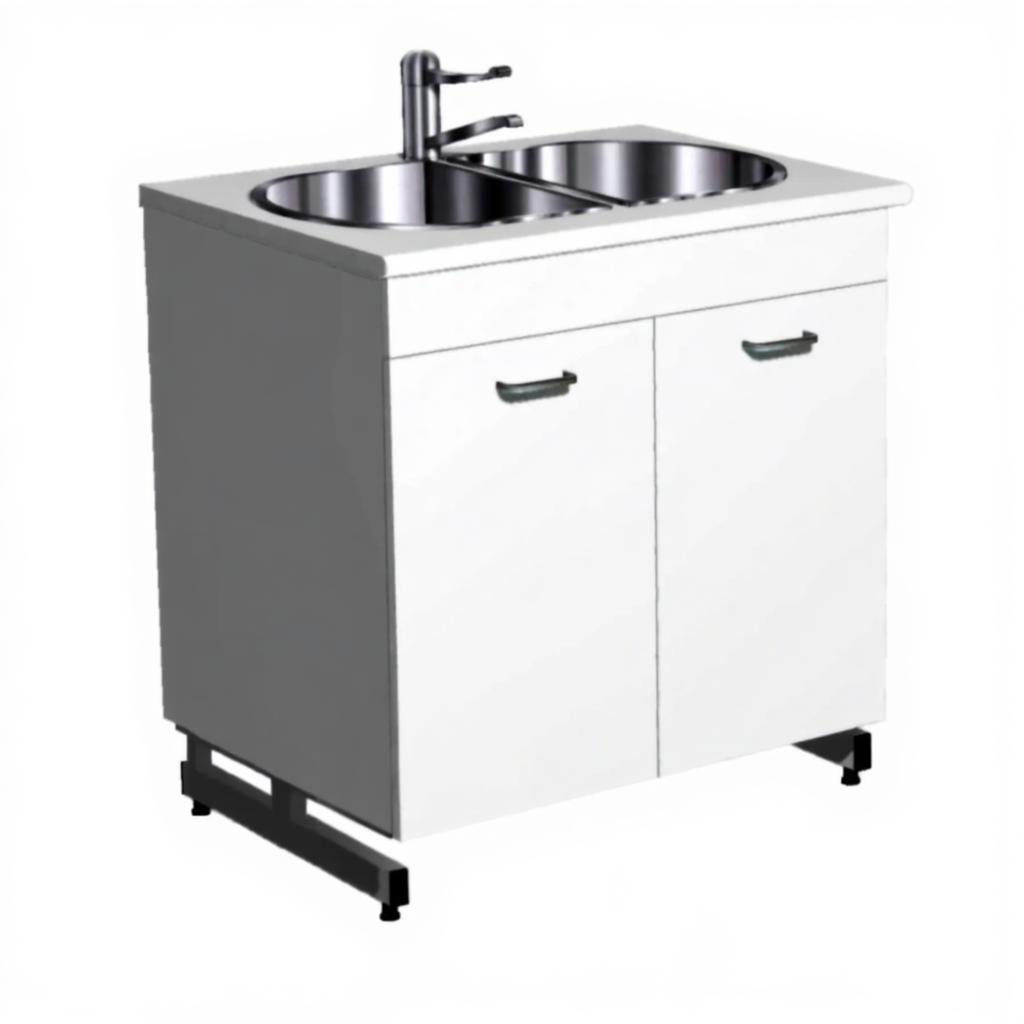 - Двухчашевая врезная мойка — из нержавеющей стали, обеспечивает удобство мытья посуды, комплектуется локтевым смесителем.