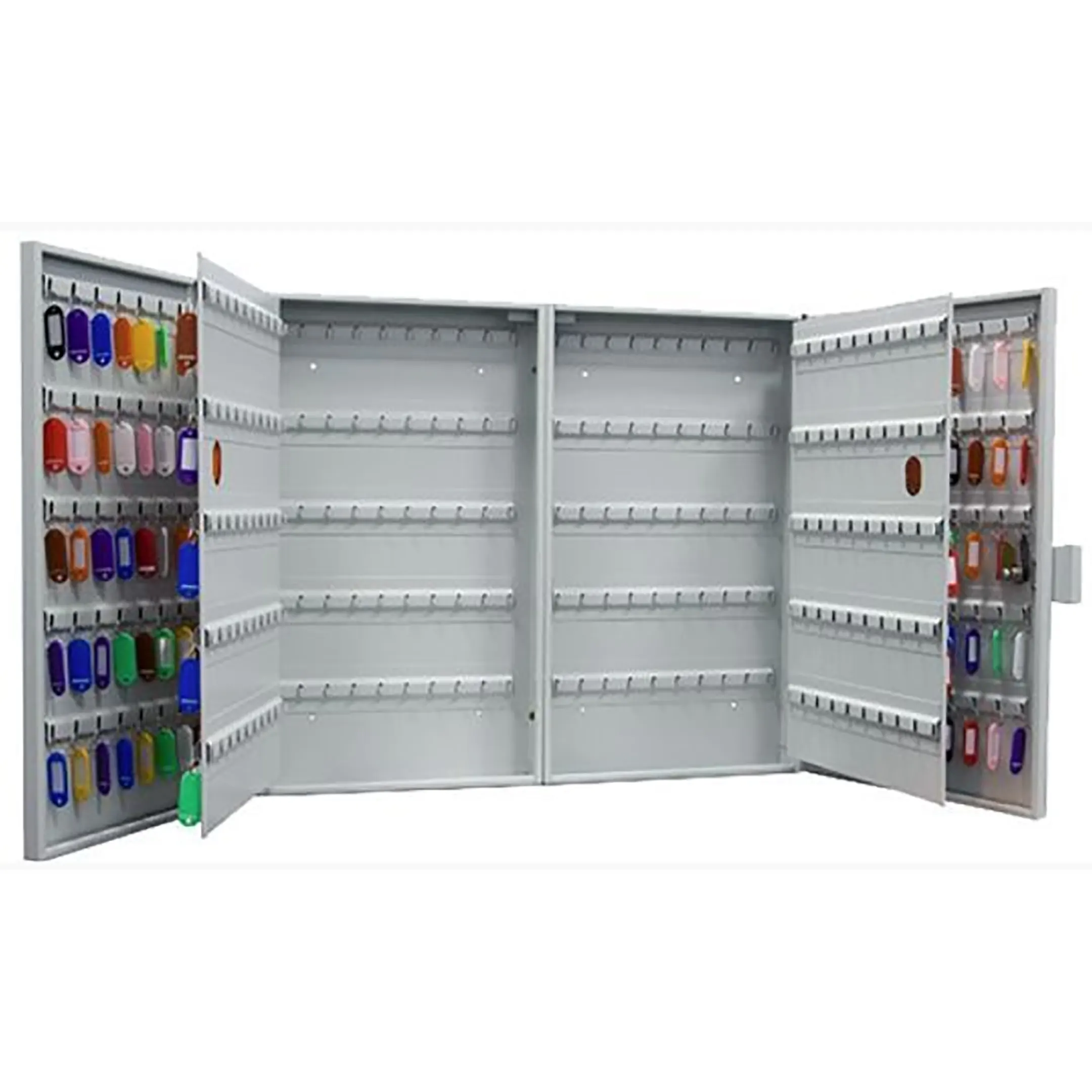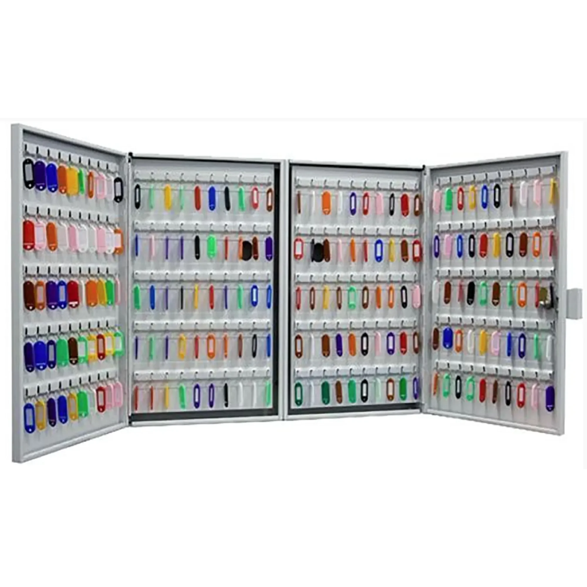 - Профессиональная комплектация и удобство — модель часто поставляется в полной комплектации, включая все необходимые брелки, таблички для маркировки и крепеж для настенного монтажа. Удобные ручки и четкая нумерация обеспечивают простоту и комфорт при ежедневном использовании.