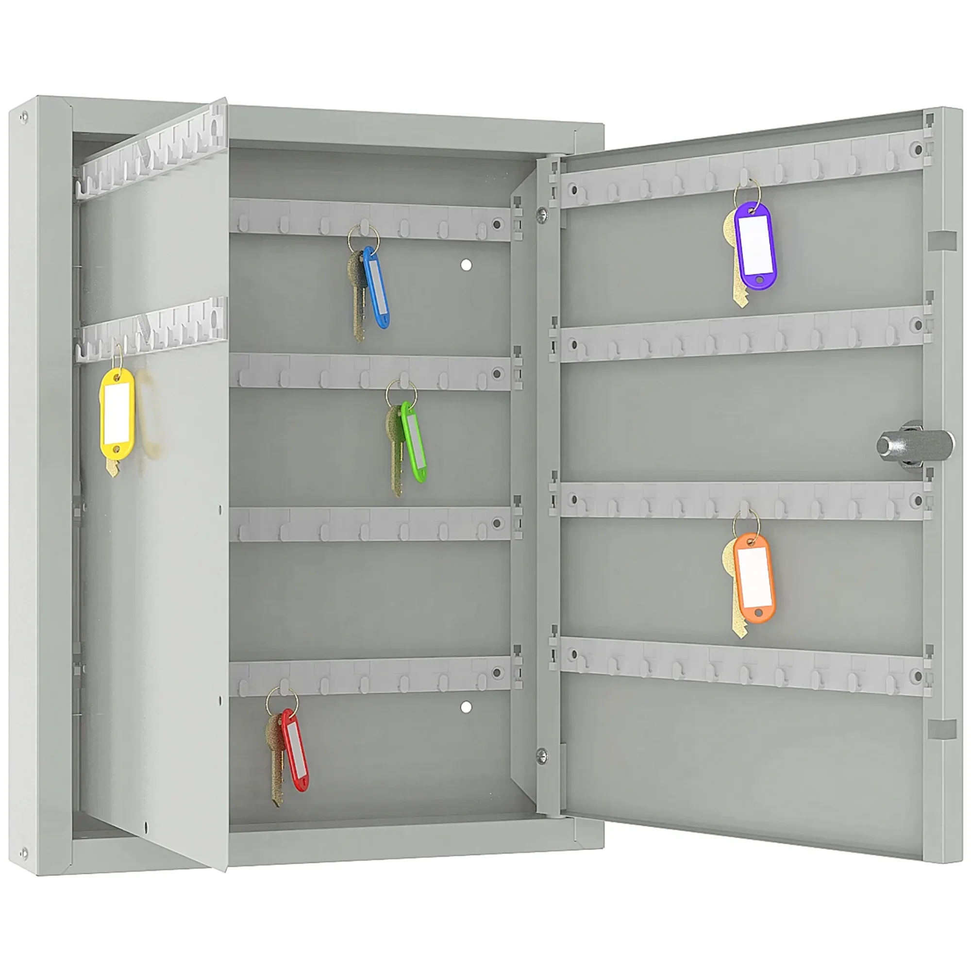 - Четкая система для точного учета и оперативного поиска — девяносто шесть пронумерованных ячеек и комплект соответствующих брелков создают прозрачную и удобную систему. Это позволяет вести детальный журнал учета, мгновенно находить требуемый ключ и однозначно определять ответственность сотрудников за их выдачу и возврат.
