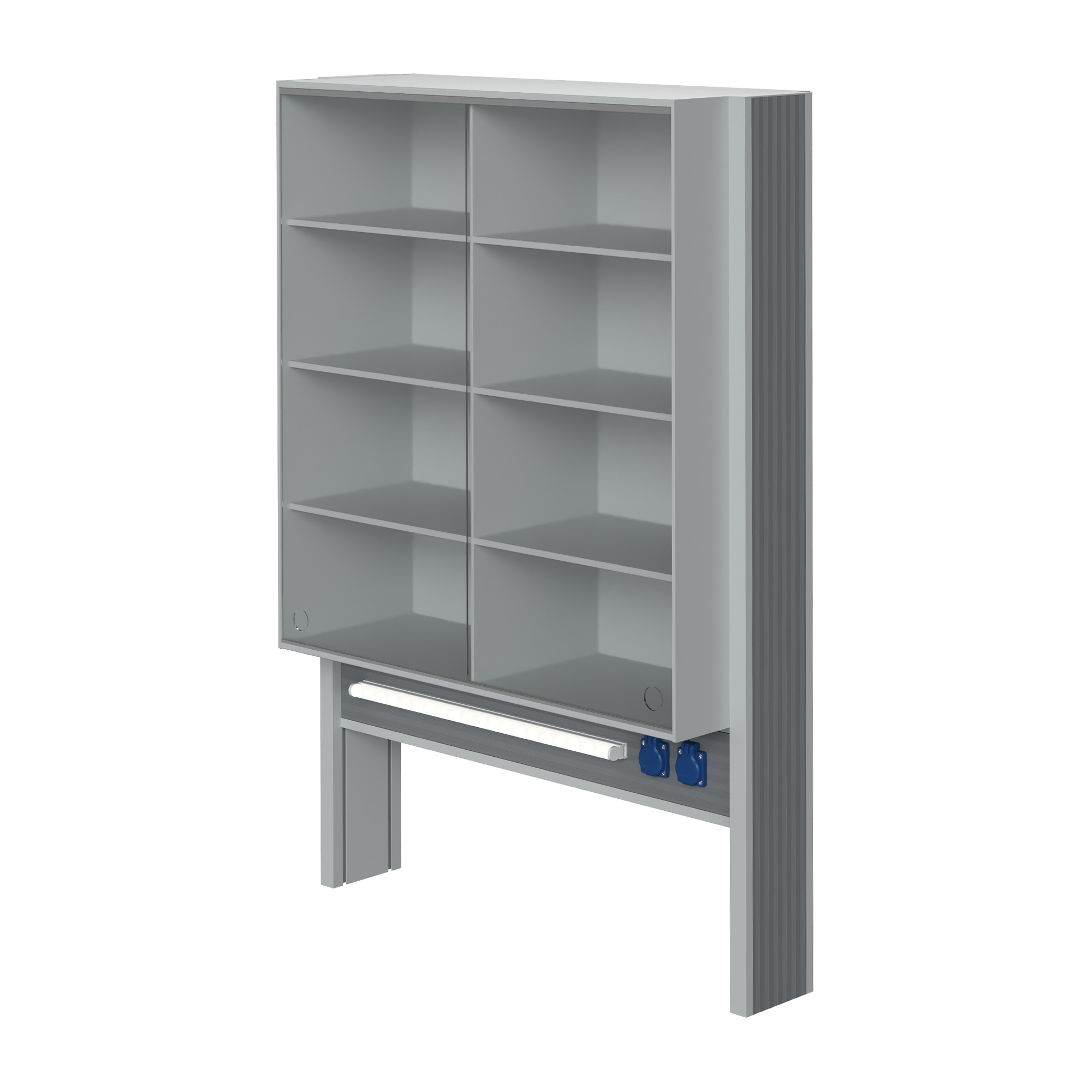 Технологический стеллаж со шкафом 900 мм для пристенного стола Mod. 900 ТСПШ-90 — это специализированное лабораторное оборудование, устанавливаемое на пристенные столы и предназначенное для хранения лабораторной посуды, приборов, реактивов и принадлежностей. Модель оснащена вместительным шкафом с раздвижными стеклянными дверями, полками, блоком электророзеток повышенной защиты и светодиодным светильником для местного освещения рабочей зоны.