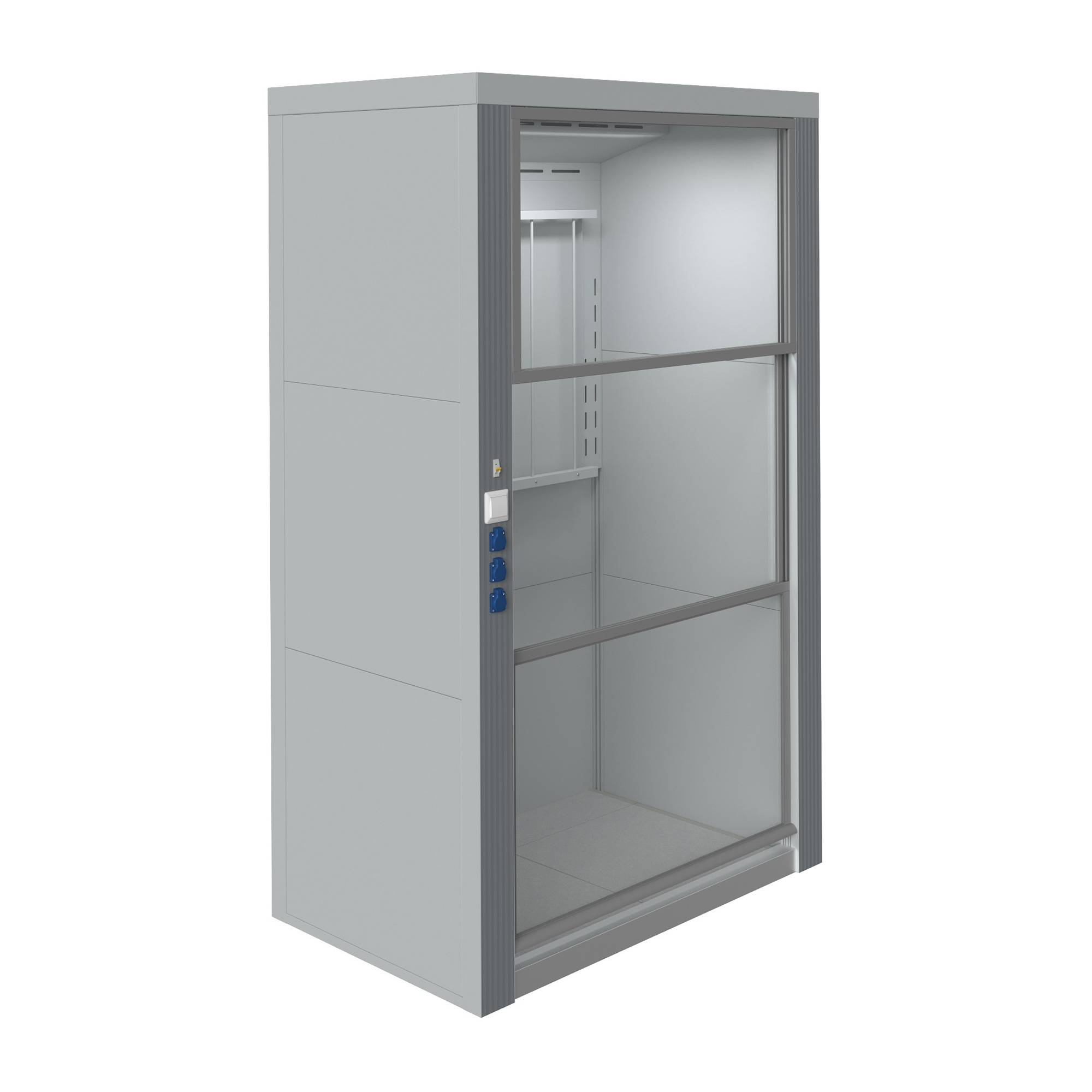 - Безопасность оператора — подъемные створки с противоударным остеклением, герметичная конструкция.