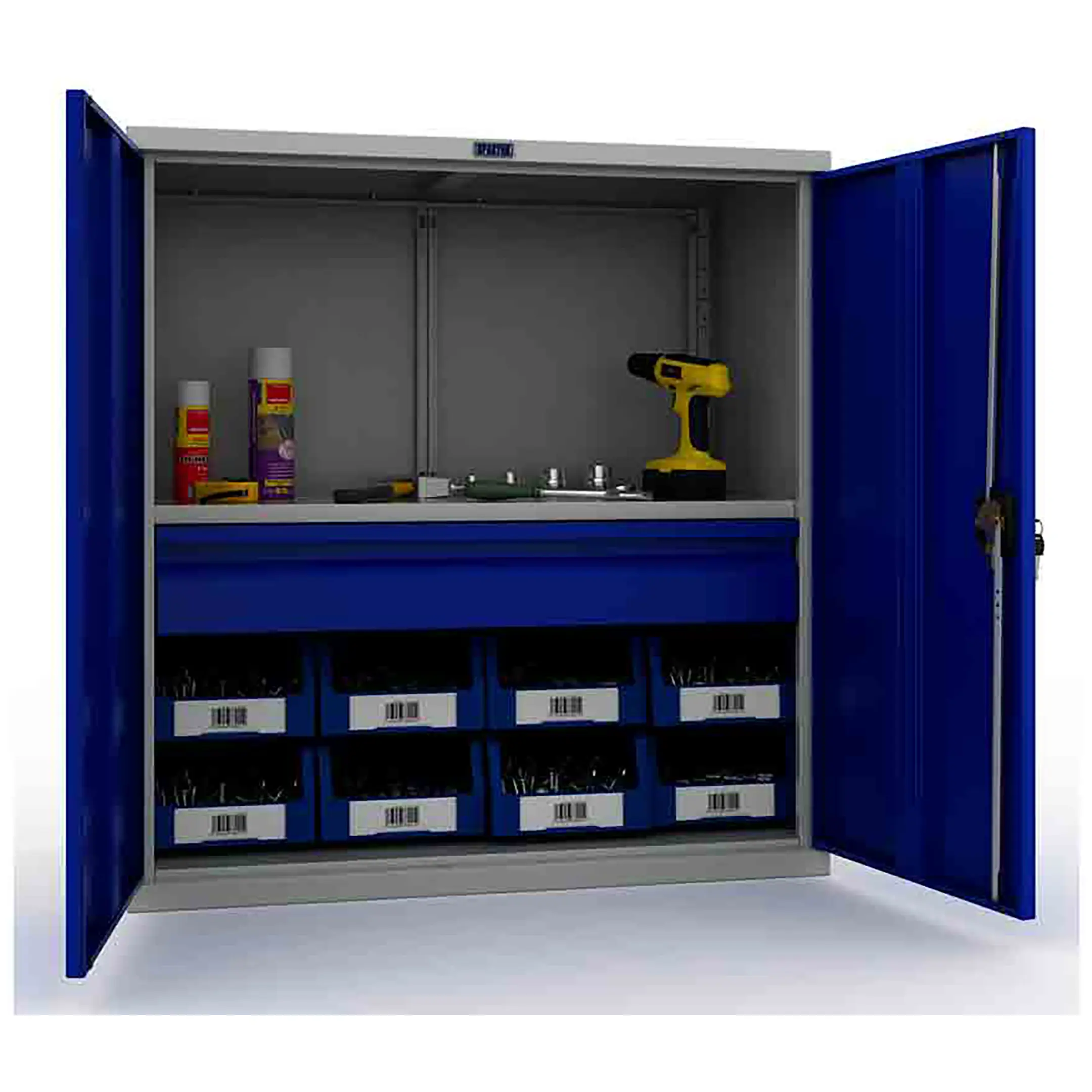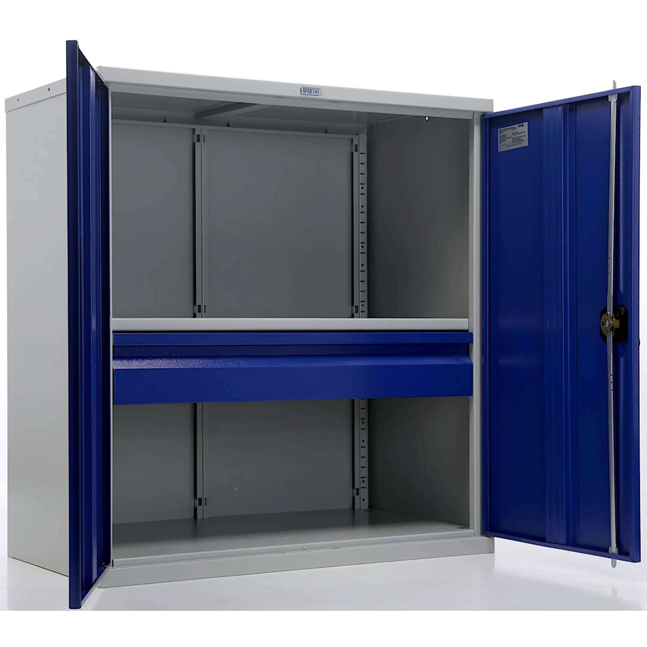 - Прочная и долговечная конструкция — каркас, ящики и дверцы изготовлены из качественной стали с антикоррозийным порошковым покрытием, что обеспечивает устойчивость к механическим нагрузкам, вибрации и воздействию производственной среды. Шкаф рассчитан на длительную интенсивную эксплуатацию.