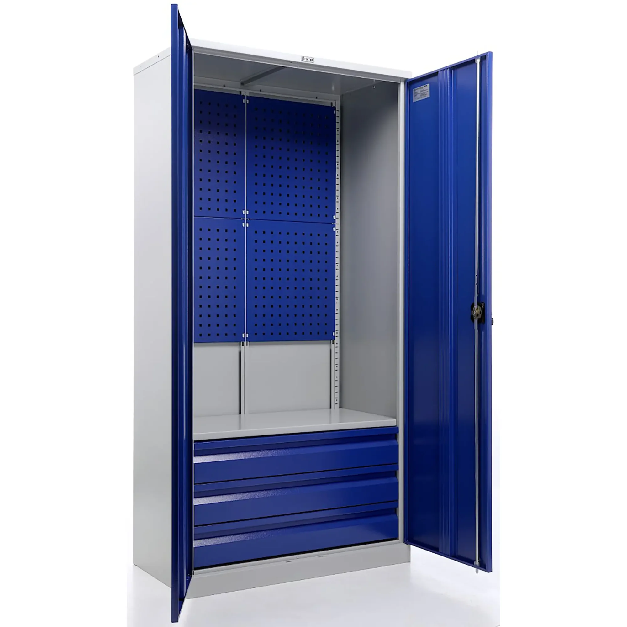 - Промышленная прочность и износостойкость — шкаф изготовлен из высококачественной стали и покрыт прочным порошковым покрытием, устойчивым к ударам, царапинам, воздействию масел, технических жидкостей и интенсивной эксплуатации в жестких производственных условиях.