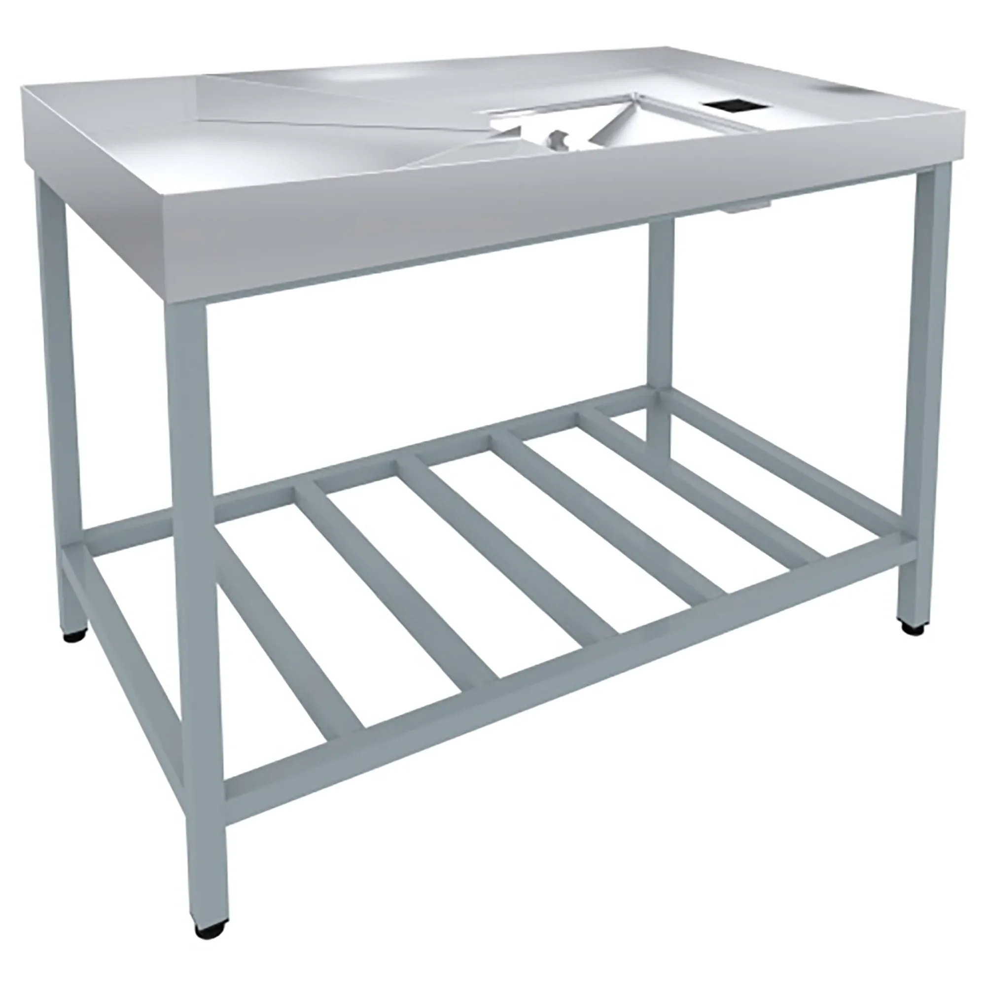 • Столешница, выполненная из нержавеющей стали, имеет с четырех сторон борта и две направляющие, для отделения крупы.