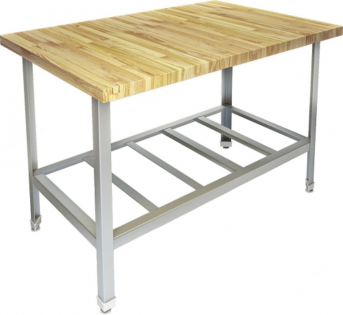 Стол предназначен для работы в кондитерских и мучных цехах. Стол имеет деревянную (бук) столешницу толщиной 40 мм и устойчивый разборный каркас. Ножки стола снабжены регуляторами высоты, что позволяет устранять неровности пола.