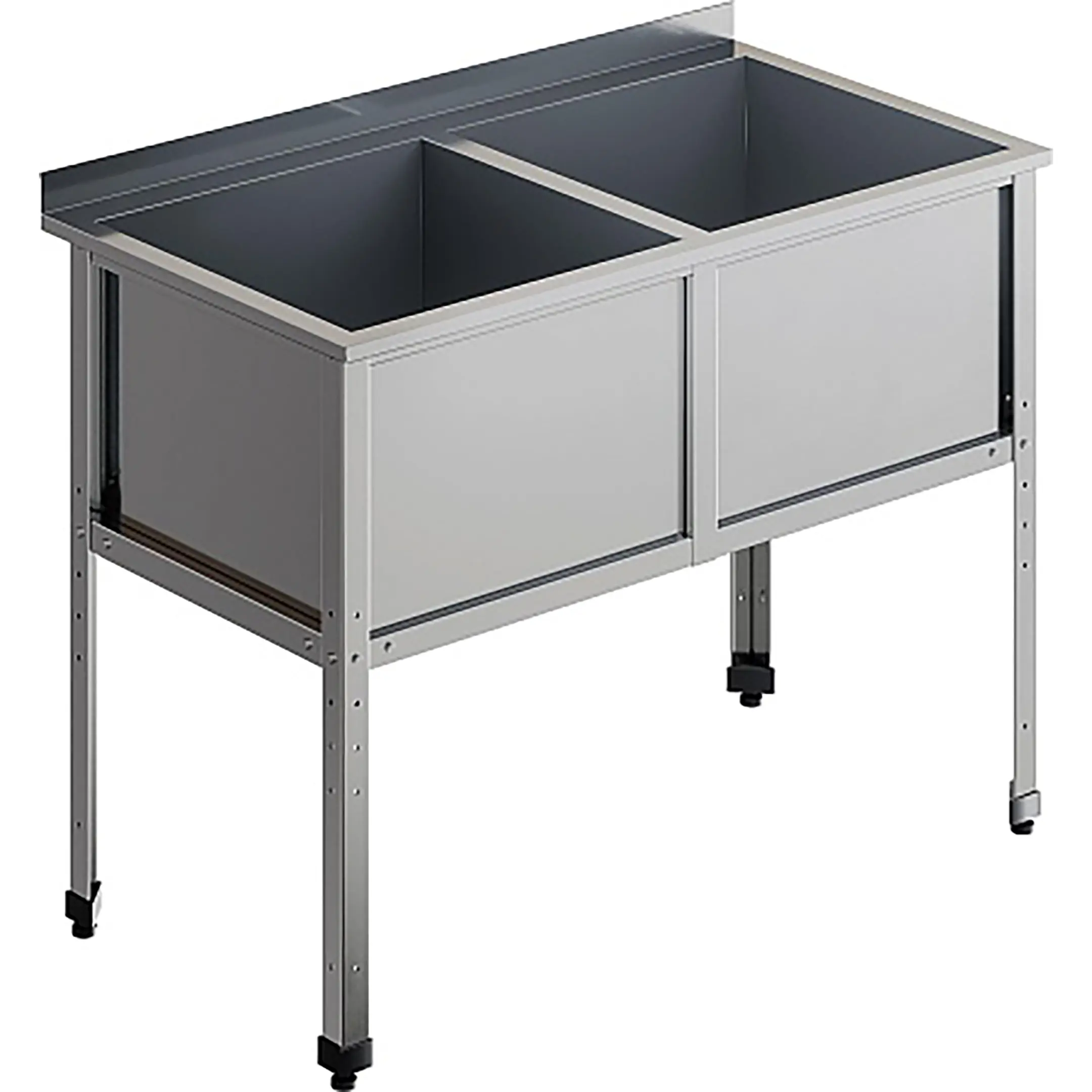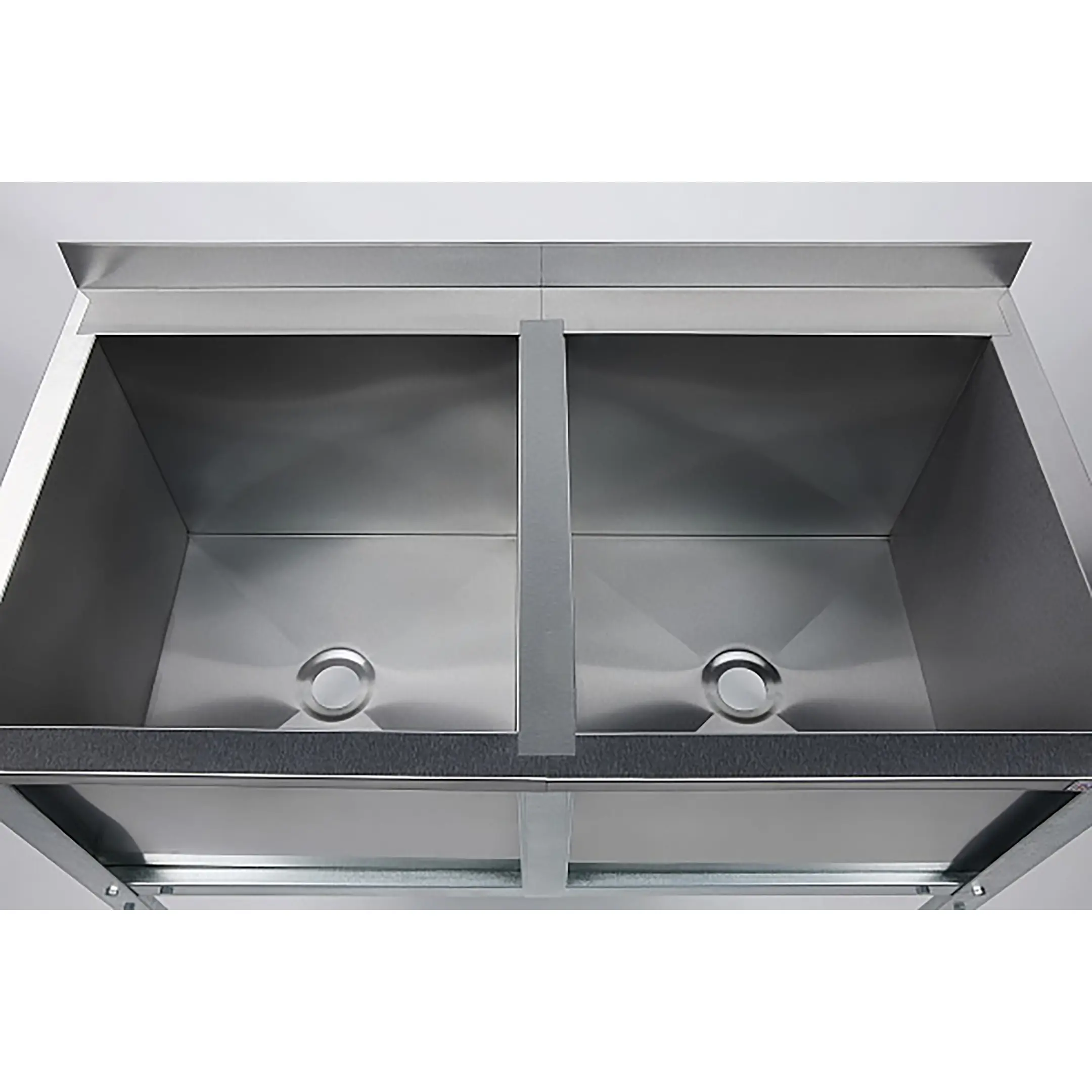 Ванна моечная двухсекционная с бортом ВМС-2/4-Б-ЭК разработана для применения в моечных отделениях предприятий общепита и торговли различного формата, пищевых производств и пищеблоков для мытья посуды, кухонного инвентаря, продуктов питания и рук персонала.