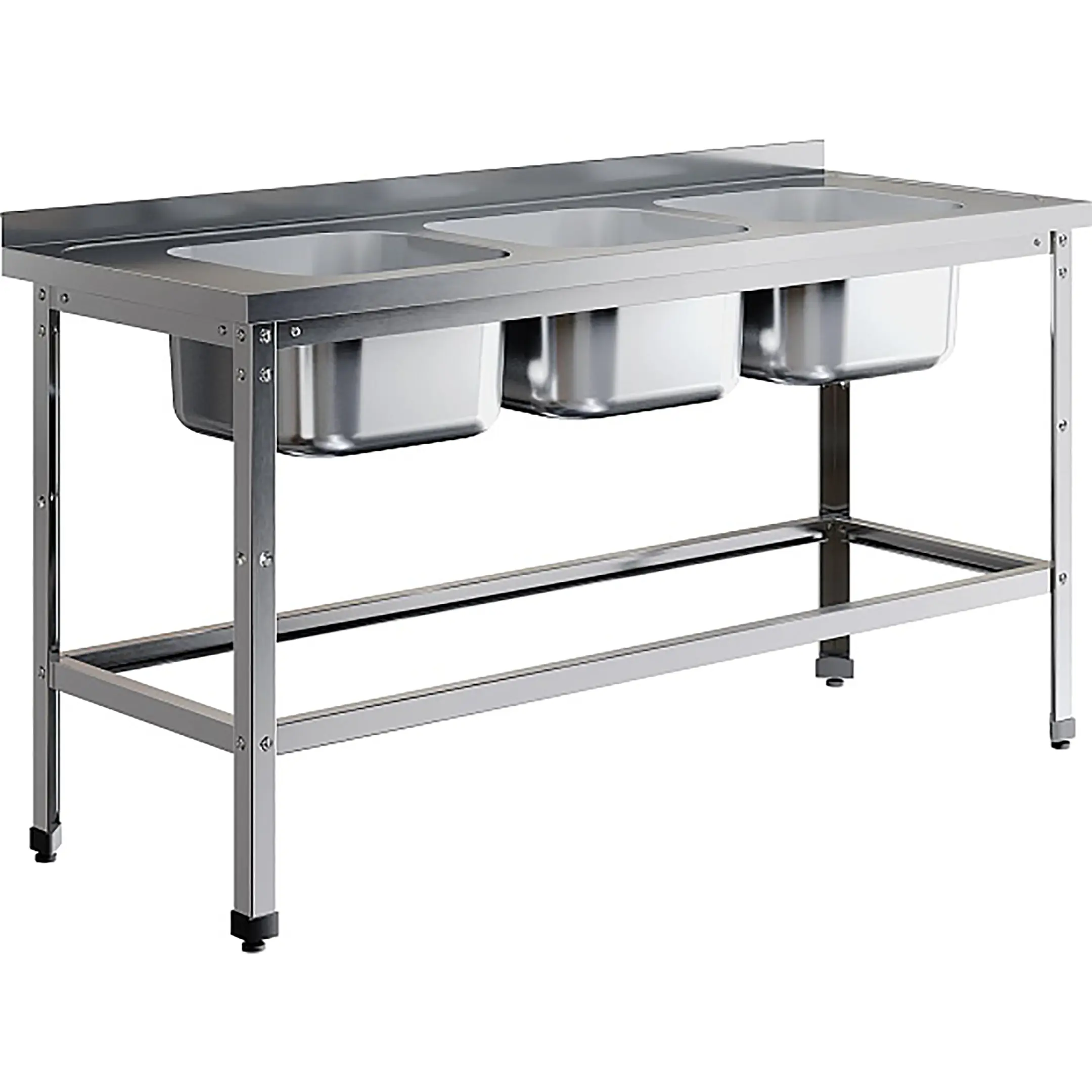 Ванна моечная трехсекционная цельнотянутая с бортом ВМЦ-3/18/7-БО-ЭН разработана для применения в моечных отделениях предприятий общепита и торговли различного формата, пищевых производств и пищеблоков для мытья посуды, кухонного инвентаря, продуктов питания и рук персонала.