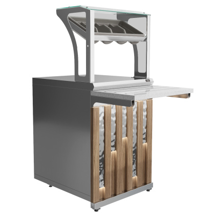 Прилавок для столовых приборов и подносов Luxstahl ПП (С)-600 Premium с направляющей из нержавеющей стали используется в составе линии раздачи на предприятиях торговли и общественного питания для хранения и раздачи столовых приборов, подносов, салфеток.