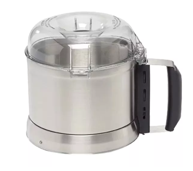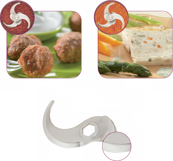 Куттер компактен, снабжен мощным вентилируемым двигателем, обеспечивающим эффективную работу даже с мясом или тестом. Прямой привод обеспечивает максимальную мощность. Крышка из поликарбоната предусмотрена для добавления жидкости или ингредиентов в процессе приготовления. Удобная ручка позволяет переносить чашу куттера одной рукой. Все рабочие части легко снимаются и моются.