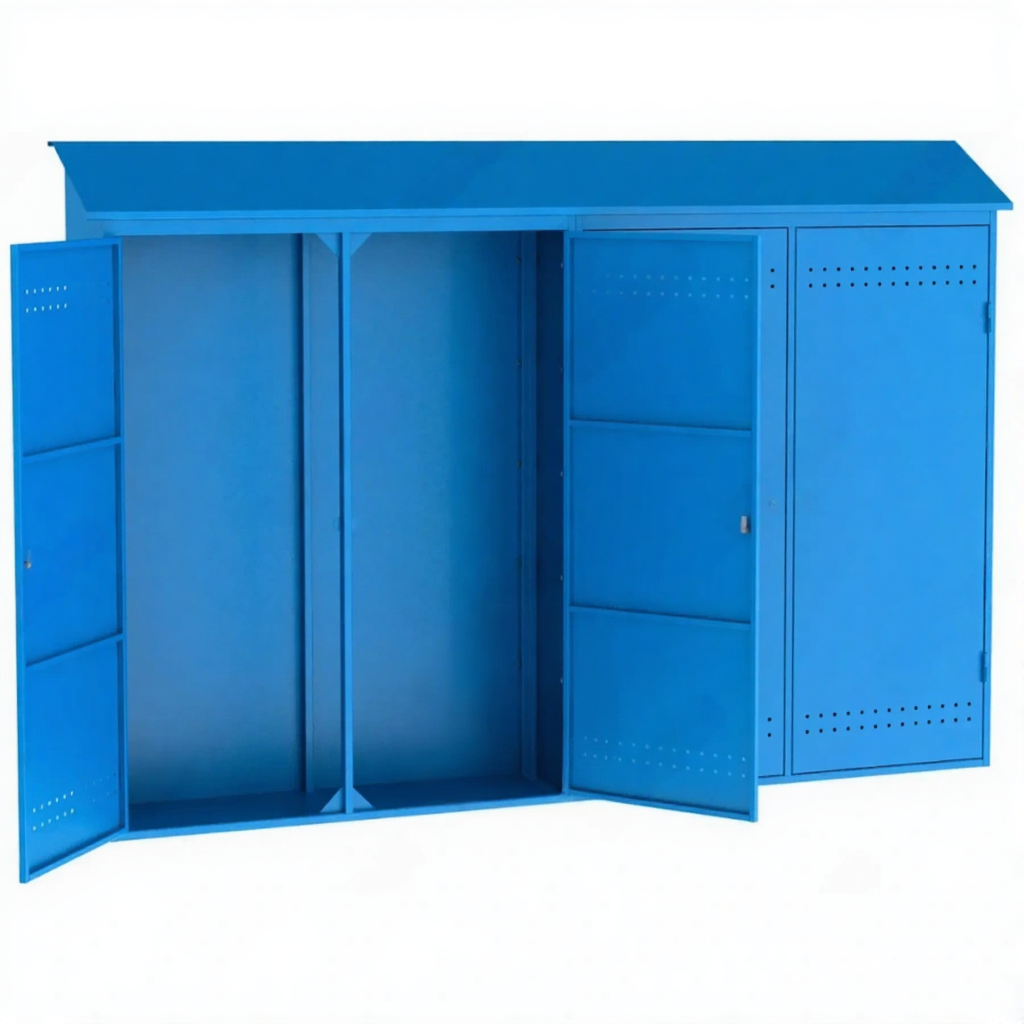 Металлический шкаф для рампы О2 (2050х3000х400) — это специализированное и надежное решение для безопасного хранения и защиты кислородных баллонов, объединенных в рампу, на производственных участках, в медицинских учреждениях, сварочных постах и на специализированных объектах. Модель представляет собой стальной защитный шкаф, где обозначение «О2» прямо указывает на его назначение для кислородного оборудования, а габаритные размеры 2050 мм (высота) х 3000 мм (ширина) х 400 мм (глубина) определяют его вместимость для размещения стандартной кислородной рампы. Конструкция разработана для строгого соблюдения правил пожарной и промышленной безопасности, обеспечивая защиту оборудования от внешних воздействий, несанкционированного доступа и создавая безопасные условия для хранения кислорода под давлением.