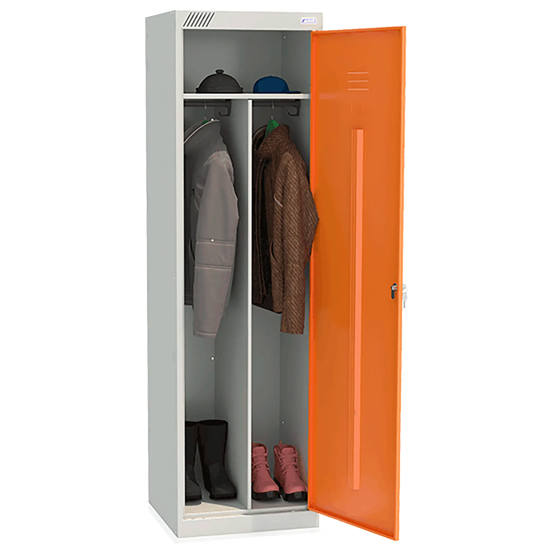 Металлический шкаф для одежды ШРЭК-21-530 предназначен для хранения сменной одежды в офисных, производственных и спортивных помещениях.
