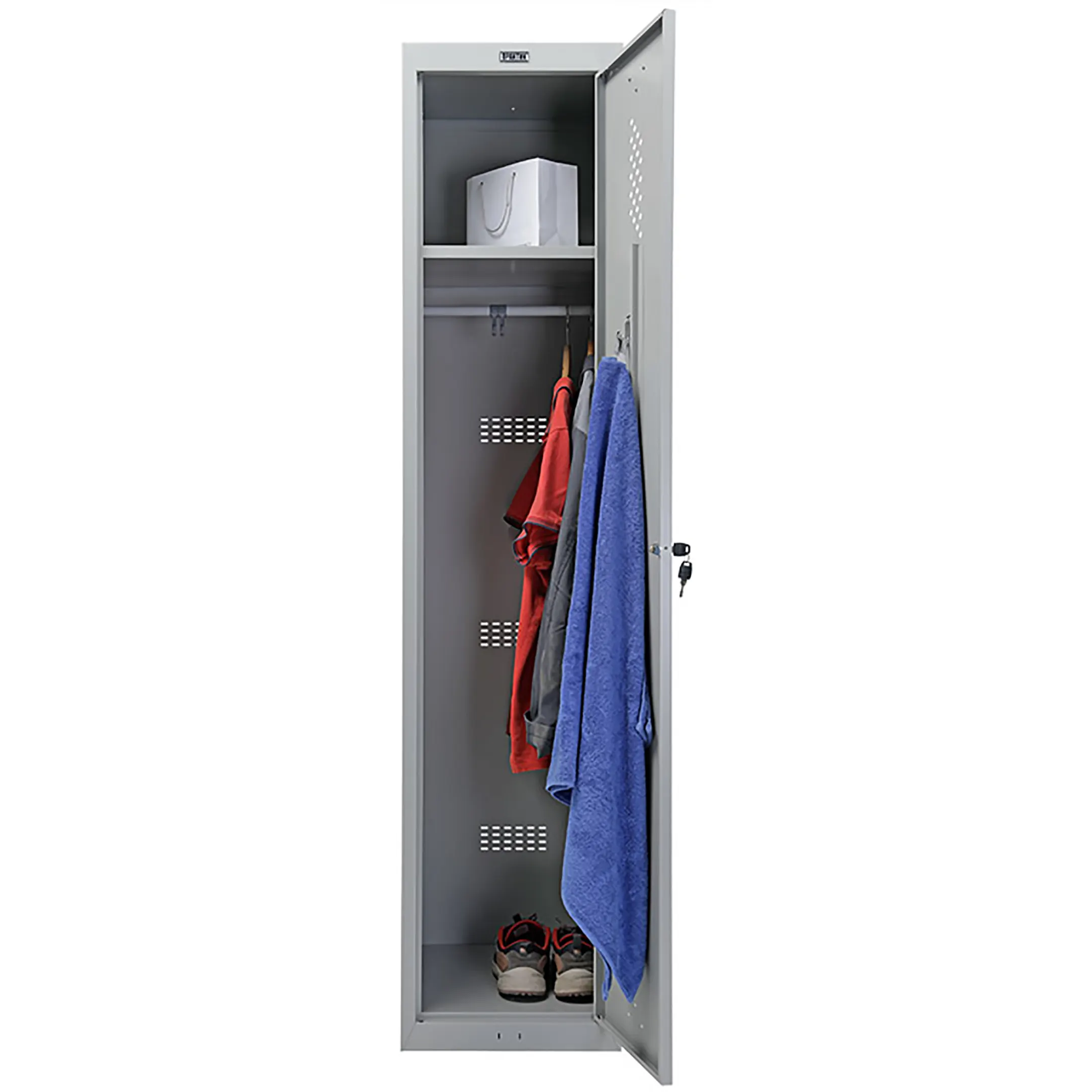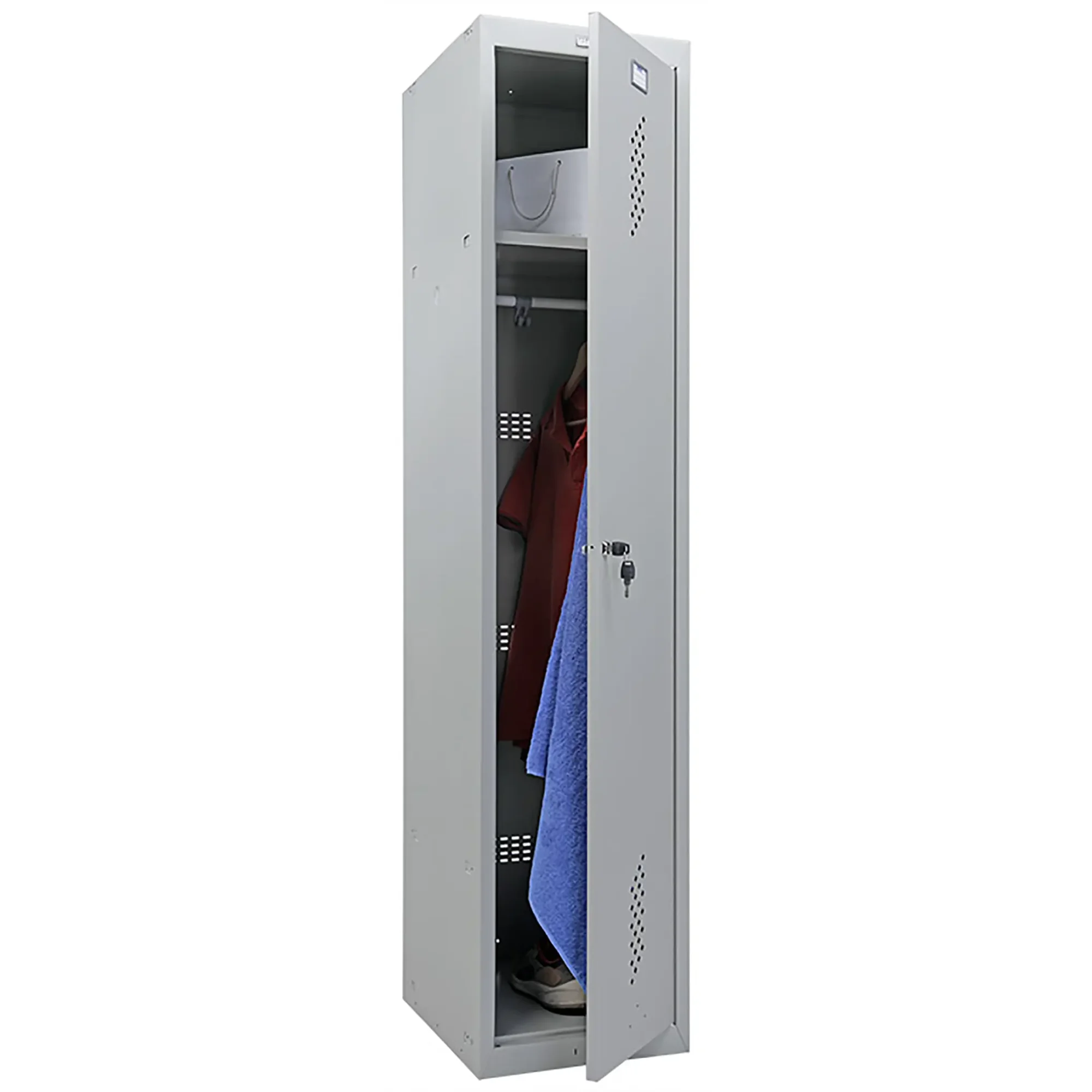 Шкаф для раздевалки ML 11-40 предназначен для хранения одежды в производственных, спортивных и других помещениях, хоз.инвентаря, а также для организации камер хранения.