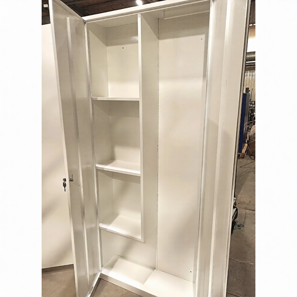 - Универсальность применения в различных учебных зонах — модель подходит для использования в разных помещениях учебного заведения: классах, лабораториях, столовых, спортивных залах и медицинских кабинетах, обеспечивая везде безопасное хранение хозяйственного инвентаря.
