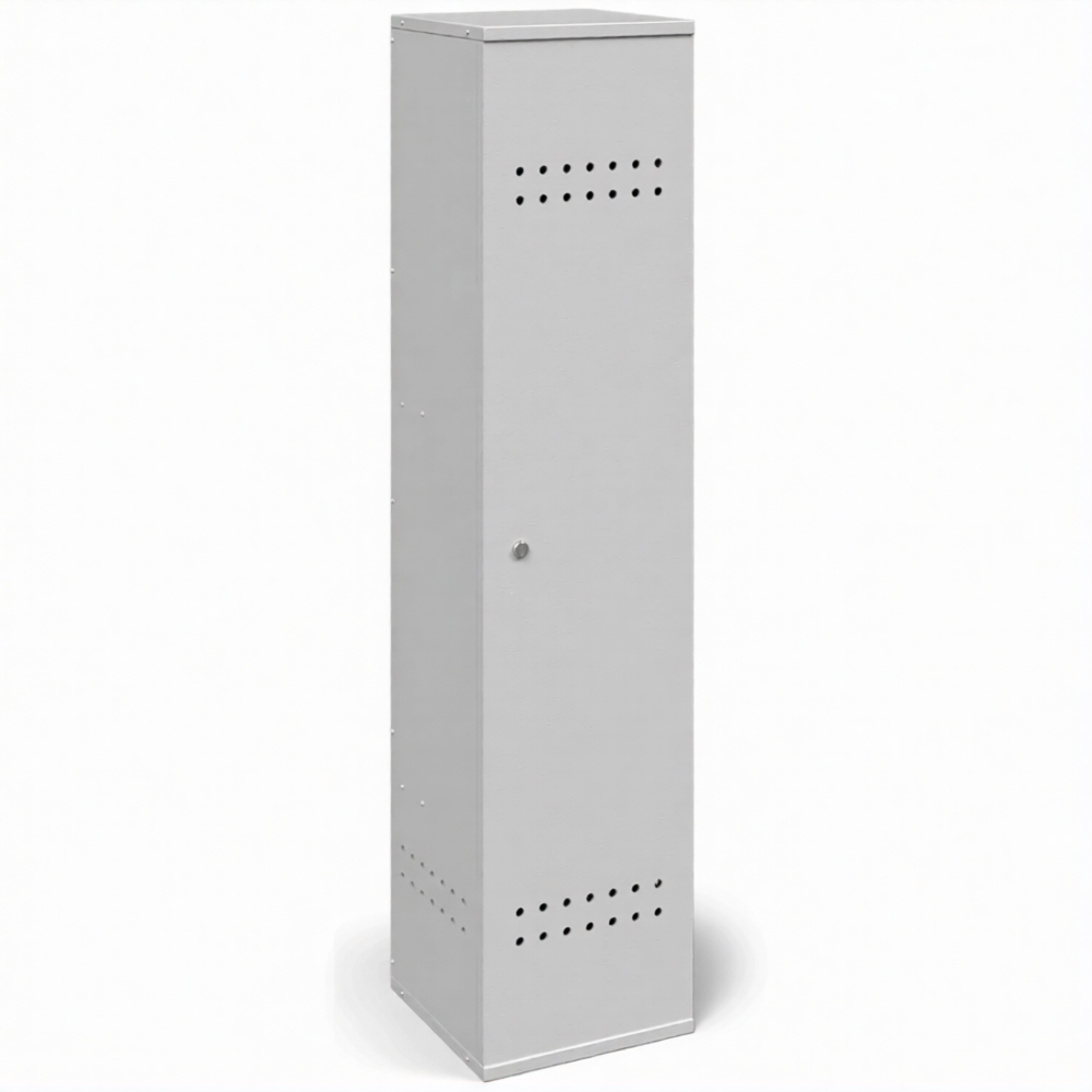 - Надежная защита от хищений и непогоды — несмотря на разборную конструкцию, собранный шкаф образует прочную и устойчивую конструкцию. Наличие запирающихся дверей на навесной замок защищает баллоны от кражи, а также от дождя, снега, пыли и прямых солнечных лучей при установке под навесом.