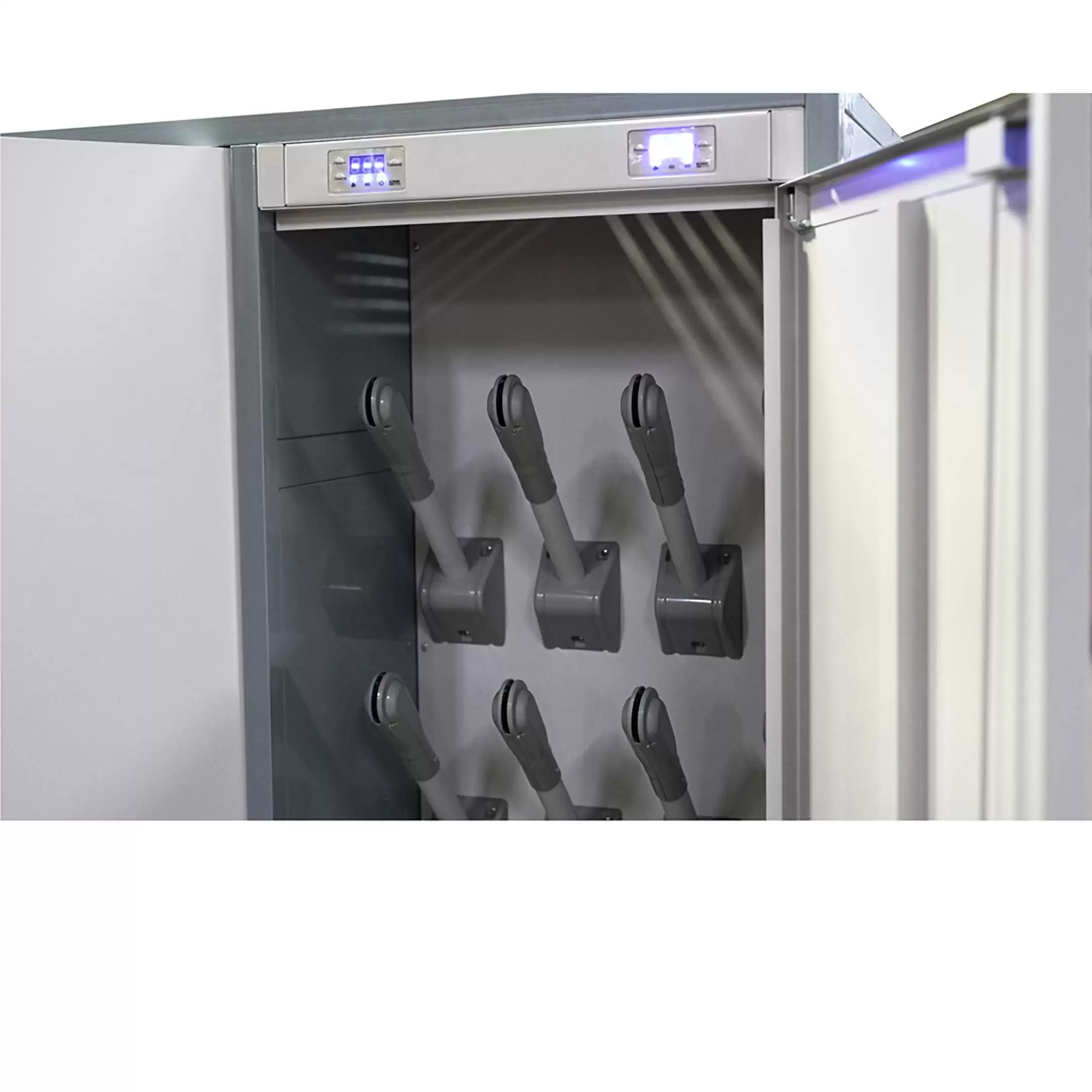 - Высокая производительность и вместимость — шкаф рассчитан на загрузку значительных объемов одежды и обуви за один цикл, что позволяет эффективно обслуживать большие коллективы на предприятиях, в спортивных комплексах или медицинских стационарах.